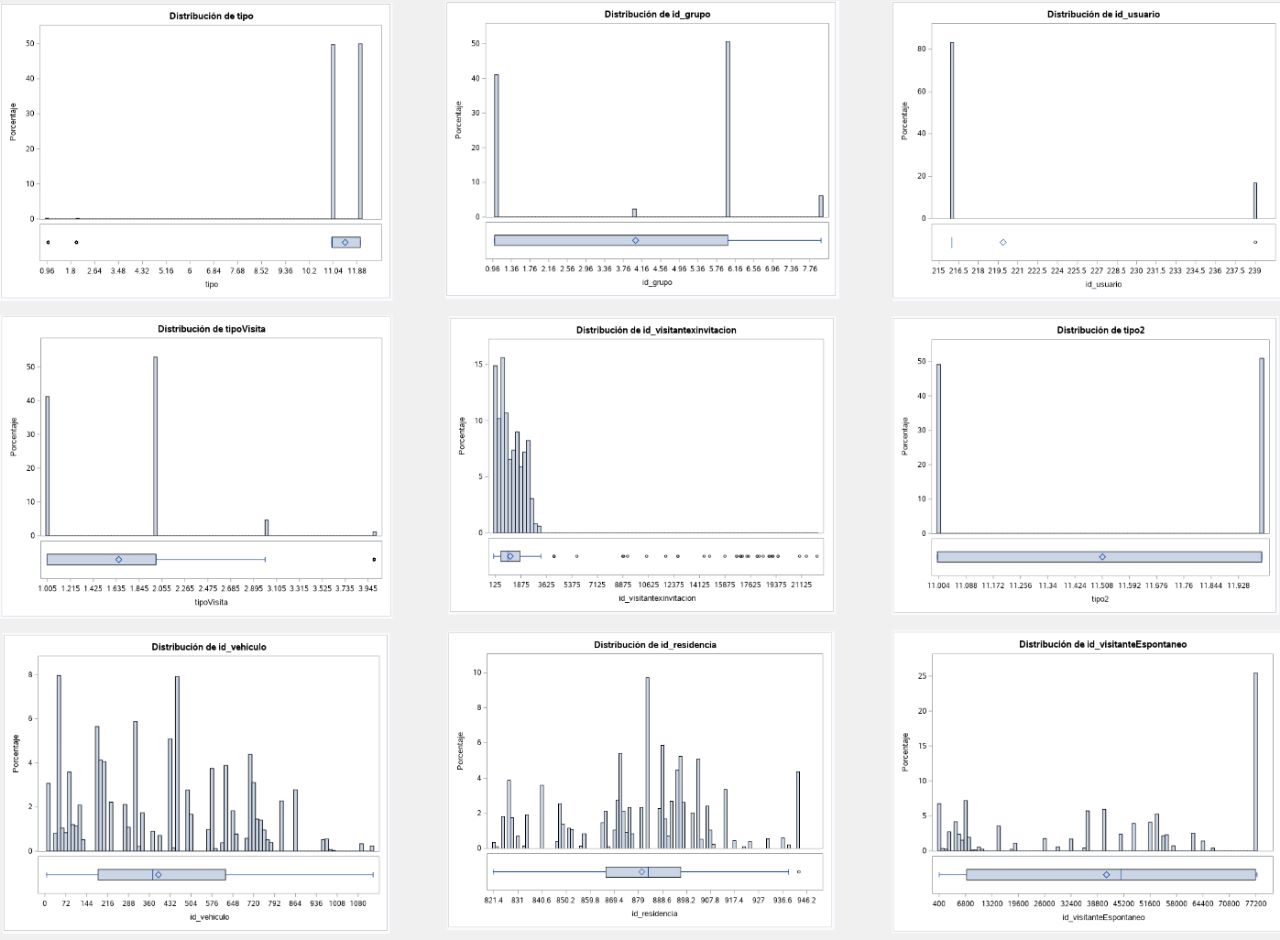 Durante nuestro análisis exploratorio, empleamos la herramienta de software SAS para examinar el comportamiento inicial de los datos. En la primera serie de gráficos, notamos una falta significativa de información en los ID de los clientes. Sin embargo, en la segunda serie de gráficos, observamos una distribución normal en las fechas, aunque notamos una ausencia de datos a partir de cierto punto. Según nos informaron, la pandemia interrumpió la toma de lecturas y la información disponible proviene de residencias en España, lo cual puede explicar la coincidencia en las fechas.