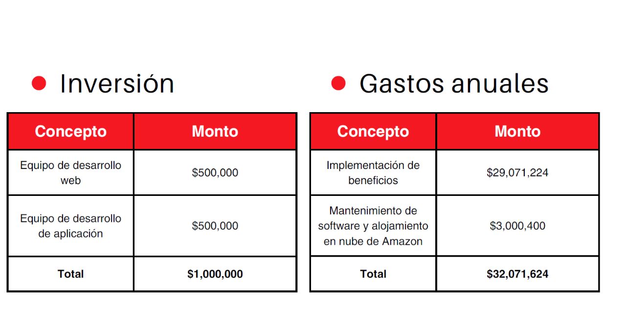 Before building the Banorte Benefits prototype, a thorough financial analysis was conducted of the expected return on investment. The conclusion reached was that the implementation of this benefits package can generate a significant return on investment. By offering employees an attractive and flexible option, their job satisfaction and commitment can be improved, which in turn translates into increased productivity and talent retention. Additionally, reducing employee turnover reduces the costs associated with hiring and training new employees.