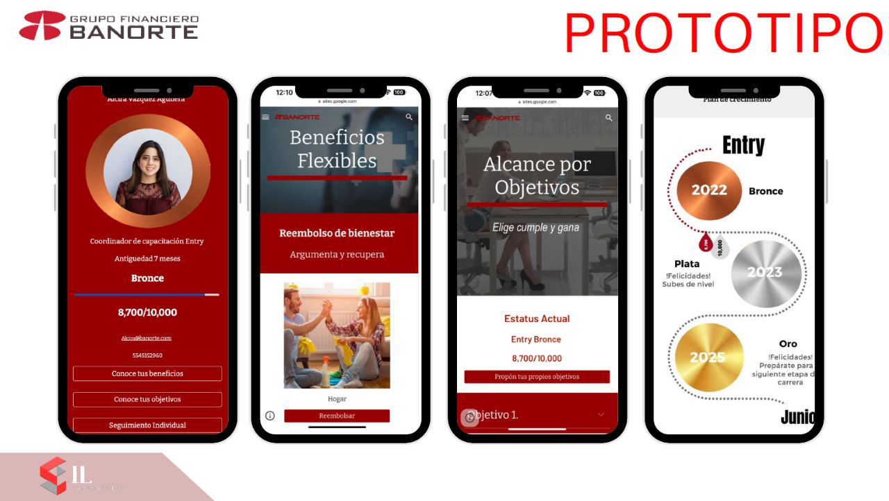 Banorte Benefits was created as a flexible benefits model to provide an immediate sense of growth and reduce employee turnover among Generation Z. A hierarchical structure of benefits was designed divided into levels (Entry, Junior, Senior, Director) and sub-levels (Bronze, Silver, and Gold) so that employees can choose a benefit every time they advance to the corresponding level. An accumulation system of points based on the goals of each position and their fulfillment was established to advance from level to level within a period of 1 to 3 years. The benefits were carefully selected based on exhaustive research into what young people value in a job and are reasonable in cost according to the position held. Likewise, the company philosophy of "Each collaborator sets and advances their career at the pace they want" would be maintained.